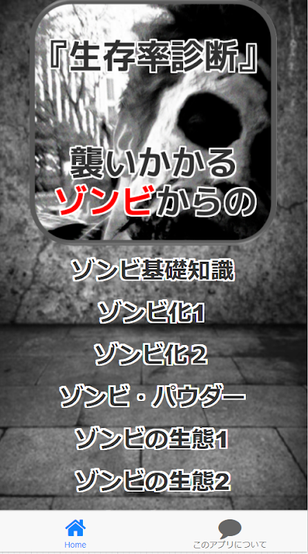 このアプリは、ゾンビから逃れるためのクイズアプリです。
