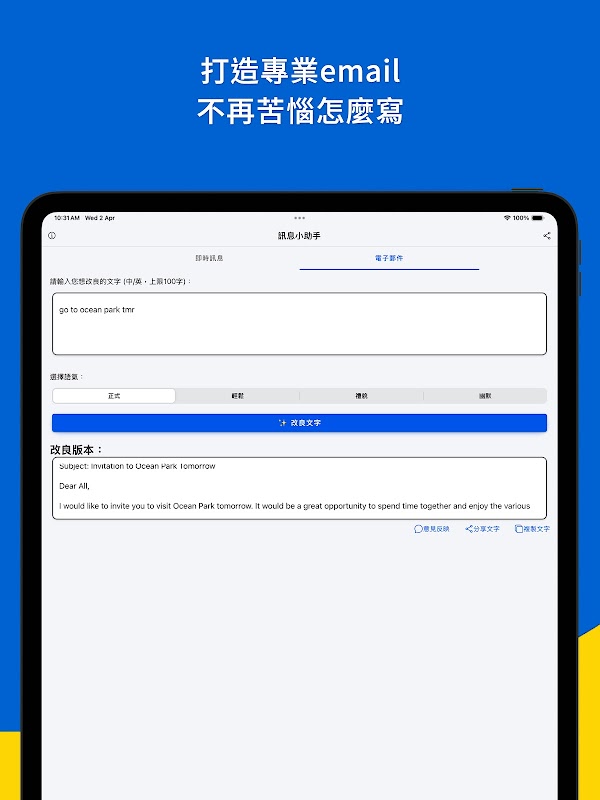 เกี่ยวกับ 訊息小助手 - 智能優化每一句,讓你輕鬆表達,自在交流