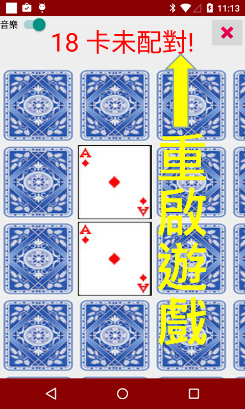 記憶配對王 卡牌翻牌配對遊戲因本程式卡牌圖樣是透過網路下載,使用時請開啟網路!本遊戲係為個人教授 Android 設計課程之教學範例!
