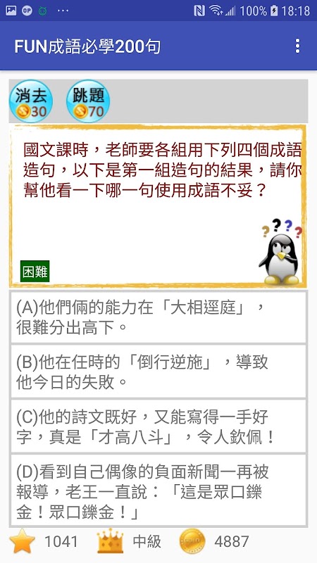 แอพนี้มีสำนวนที่เหมาะสมมากกว่า 200 สำนวนสำหรับโรงเรียนประถมและมัธยมต้น (200 สำนวนสำหรับประถมศึกษาในไถหนานไต้หวัน) สำนวนเหล่านี้นำเสนออย่างเป็นระบบสดใสและน่าสนใจเป็นแพลตฟอร์มสำหรับนักเรียนระดับประถมศึกษาและมัธยมศึกษาในการเรียนรู้และใช้สำนวนอย่างยืดหยุ่น ระบบนี้ประกอบด้วยสองส่วนส่วนหนึ่งคือการเรียนรู้สำนวนเพื่อให้นักเรียนได้รับแนวคิดพื้นฐานของสำนวนและอีกส่วนหนึ่งคือการเล่นสำนวนและใช้สำนวนเพื่อเรียนรู้และใช้ในชีวิตประจำวัน