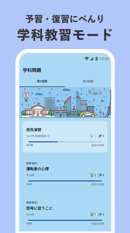 アプリ内でモードを選択することで第一種運転免許と第二種運転免許の問題を切り替えて学習することができます。