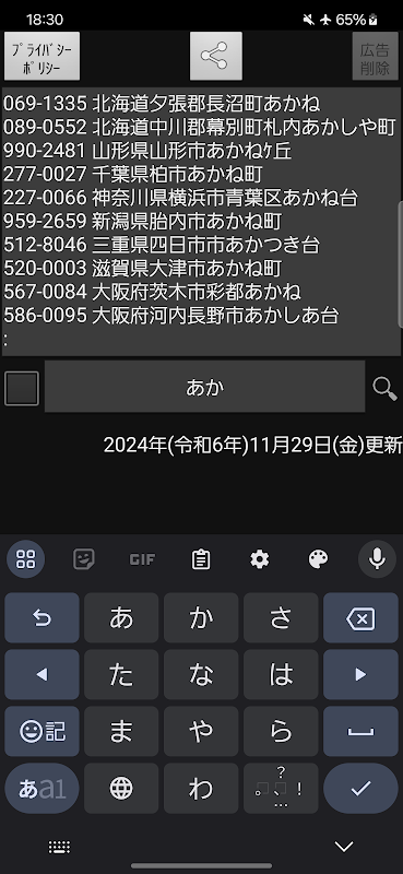 郵便番号検索アプリオフライン