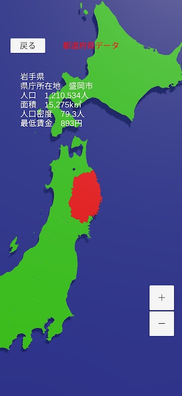 คุณสามารถเรียนรู้เกี่ยวกับจังหวัดของญี่ปุ่นได้โดยการทำแบบทดสอบเพื่อเดารูปร่างของแต่ละจังหวัด และดูข้อมูล เช่น ประชากรและพื้นที่