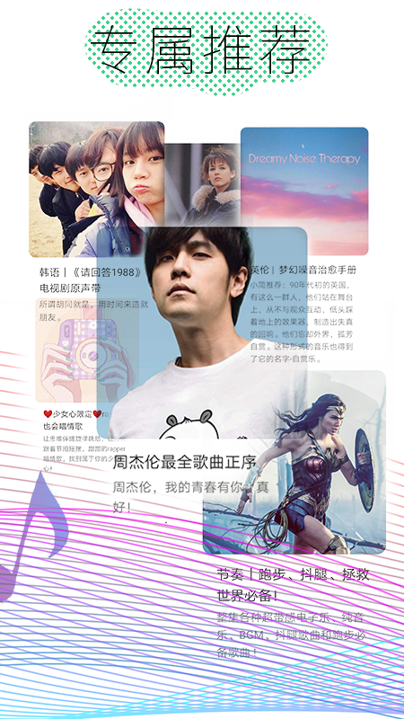 根据应用场景、兴趣偏好、心理状态等多个维度进行音乐智能推荐。