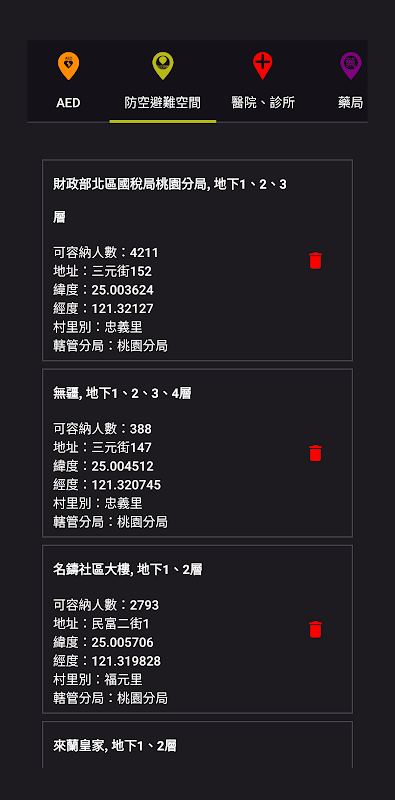 หมายเหตุ: แอป "แผนที่ศูนย์หลบภัยทางอากาศไต้หวัน" ไม่ได้เป็นตัวแทนของรัฐบาล หน่วยงานทางการเมือง องค์กร หรือหน่วยงานที่เกี่ยวข้อง แอปนี้ใช้ข้อมูลที่เปิดเผยต่อสาธารณะเพื่อการอ้างอิงของผู้ใช้เท่านั้น และไม่รับประกันความถูกต้องหรือความพร้อมใช้งานของข้อมูลนี้