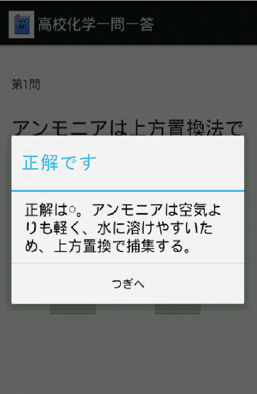 ※本アプリは以前公開していた高校化学一問一答(受験対策ワーク[化学])を開発環境を変え、再度作り直したものです。前回のアプリの最終更新版では、誤答の場合にのみ解説が出るようになっていましたが、本アプリでは正誤に関係なく、解説が出るように致しました。