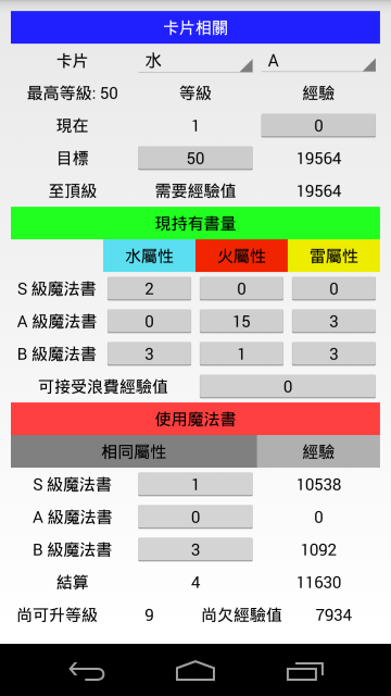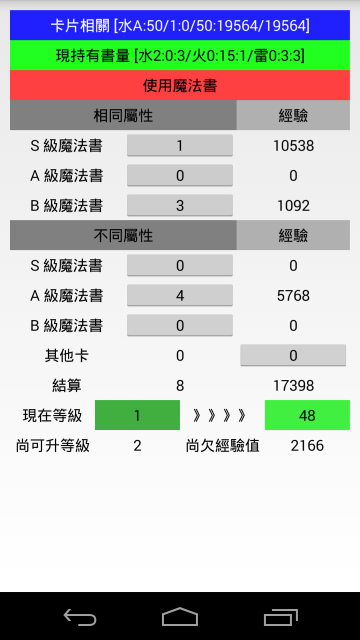 按「卡片相關」,「現持有書量」及「使用魔法書」都有不同的輸出.