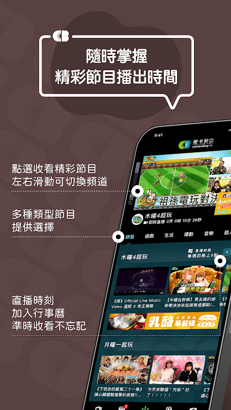 麥卡貝網路電視提供自製綜藝、遊戲、音樂等節目內容及精彩體育賽事直播,致力打造囊括多樣化節目的影音平台!