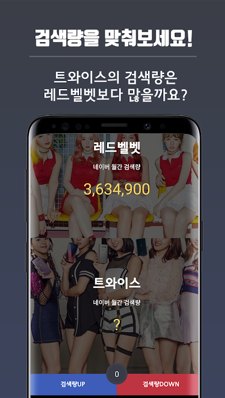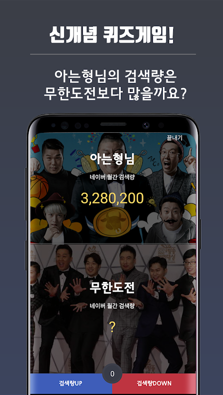 1000개 이상의 키워드와 다양한 컨테츠들로 이루어져 있는 신개념 퀴즈게임 검색량 업앤다운!