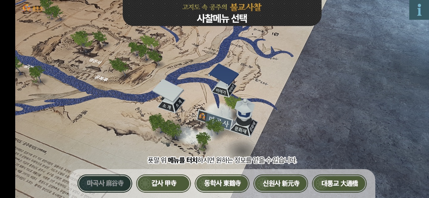 เป็นแอปเติมความเป็นจริง (AR) ที่ช่วยให้คุณเดินทางไปยังวัดพุทธใน Gongju ในแผนที่เก่า (แผนที่ท้องถิ่น, Gongju Mokjido, 1872)