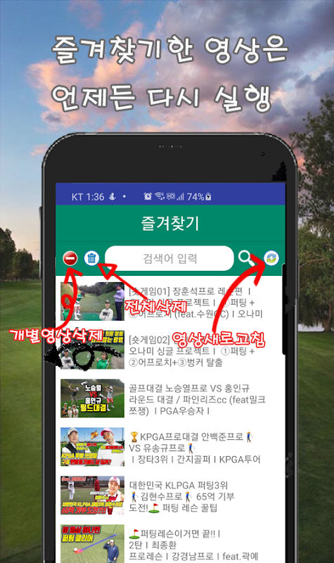 The Golf Master app has been completely changed. You can select and watch YouTube videos that can be easily learned and utilized by golf beginners as well as golf masters.