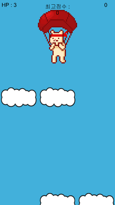 구름피하게 게임은 간단한 게임으로 오른쪽 왼쪽 터치로 고양이를 좌우로 움직여 구름을 피해보세요