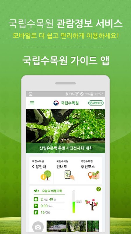 국립수목원 가이드 앱에서도 모바일 예약시스템을 편리하게 이용할 수 있습니다.