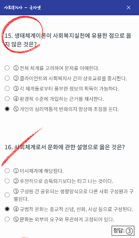 -. 각 회차별 기출 문제를 풀고 정답과 오답, 정답율 등의 결과를 바로 확인 하실 수 있습니다.