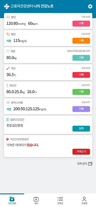 근로자건강센터 나의 건강노트 1.4.00