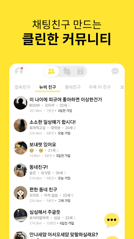 * 최근 접속한, 가까운, 인기있는 등 여러 기준으로 친구들을 찾을 수 있습니다.