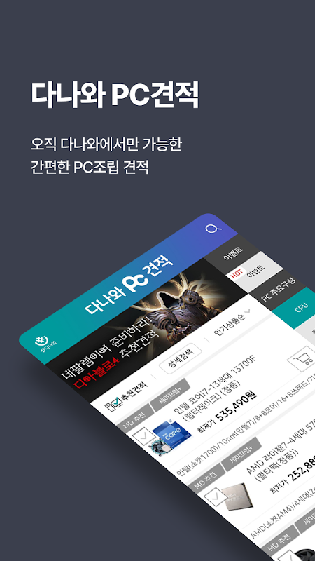 ใบเสนอราคาพีซีของ Danawa ให้ข้อมูลผลิตภัณฑ์มากมายถึง 100,000 รายการ และข้อมูลราคาของผู้ค้าปลีกพีซีที่รับประกันโดย Danawa ดังนั้นคุณจึงสามารถใช้งานได้ง่ายและปลอดภัยตั้งแต่การกำหนดค่าของพีซีที่ประกอบมาจนถึงการชำระเงิน