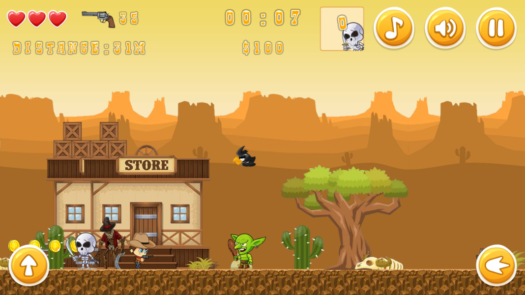 카우보이가되어보세요! 총알을아껴적들을공격하거나피하세요! 귀여운그래픽의카우보이가되어모험을즐길수있습니다.