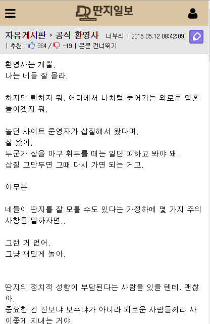 딴게이는 딴지일보의 자유게시판을 이용한 앱입니다.