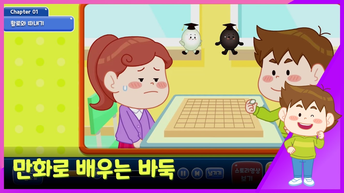 แอปพลิเคชั่นนี้เป็นโปรแกรมการศึกษาแอนิเมชั่นสำหรับผู้เริ่มต้นของ Go ซึ่งวางแผนและผลิตโดย Korea Origins เพื่อเผยแพร่ Go สำหรับเด็ก สร้างขึ้นจาก 『ความคิดสร้างสรรค์ระดับประถมศึกษา·ตำรา Baduk บุคลิกภาพ』 ที่วางแผนโดย Korea Kiwon และประกอบด้วยแอนิเมชั่นและเกมเพื่อให้แม้แต่เด็กที่ยังใหม่กับ Baduk ก็สามารถเรียนรู้ได้ง่ายและสนุกสนาน