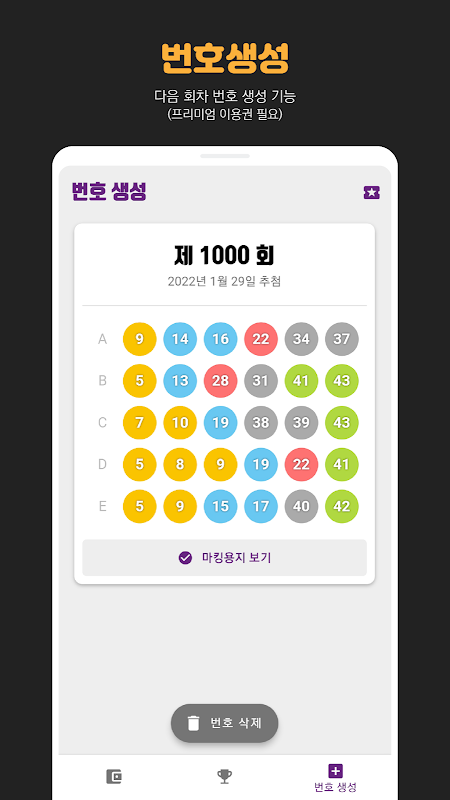 ※ 로또 번호 저장 기능은 사용중인 디바이스에만 저장되며 어떠한 정보도 외부로 전송되지 않습니다.