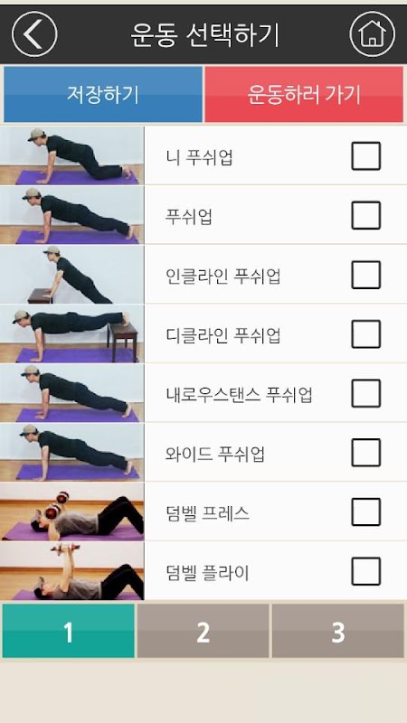 - 운동 리스트 - 운동에 대한 자세한 설명과 주의사항을 운동 영상과 함께 제공합니다. 그리고 하고 싶은 운동을 선택하여 운동할수도 있습니다.