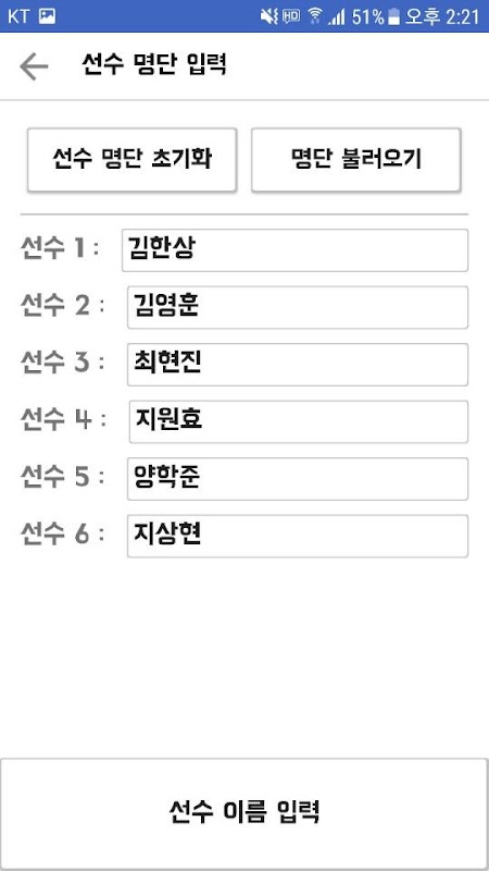 2. 경기 결과란이 비었을경우 다시입력과 0점처리 중 선택할 수 있습니다.