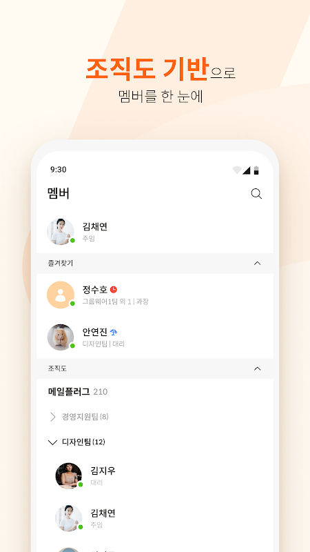 - คุณสามารถตรวจสอบสมาชิกทั้งหมดได้อย่างรวดเร็วตามแผนผังองค์กรและเลือกคู่สนทนาได้อย่างรวดเร็ว