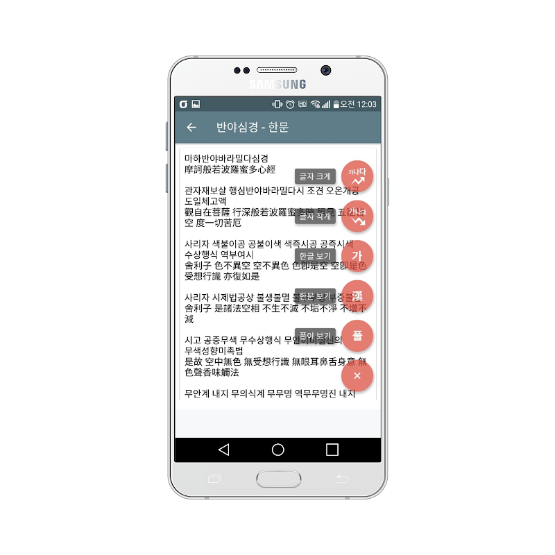 앱에서는 글자 크기 조절 기능을 지원하여 더욱 편리하게 경전을 보실 수 있습니다.