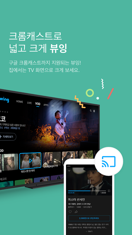 • 뷰잉 모바일앱의 콘텐츠는 국내에서만 시청이 가능해요.