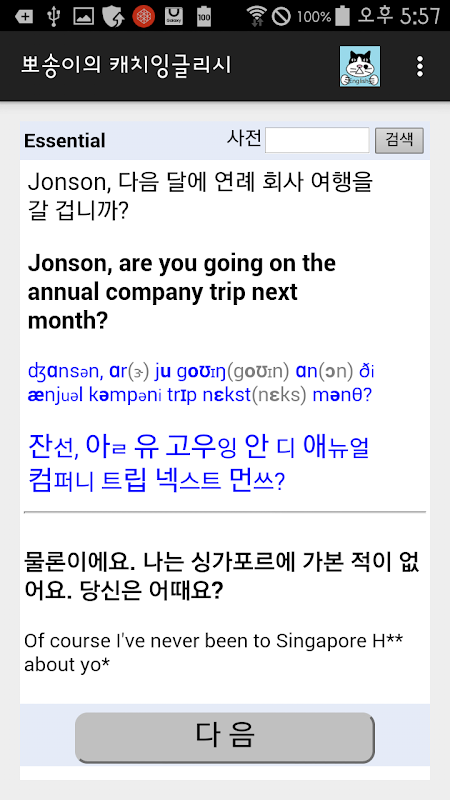 영어회화, 영어단어, 영어숙어를 자동으로 생성된 한글발음기호와 함께 공부할 수 있습니다.