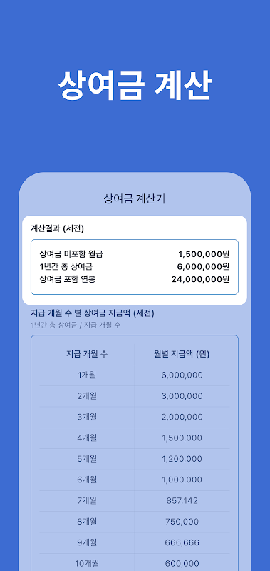 ข้อมูล 상여금 계산기 - 근로자 연봉정보로 상여금과 월급 계산 APK