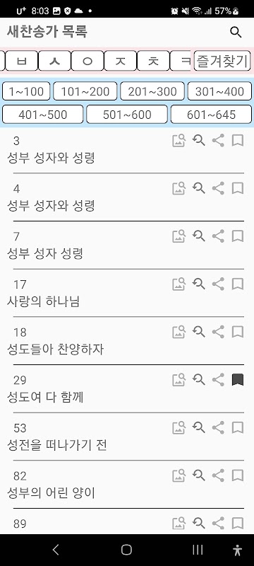 개별 검색 추가(장 번호, 제목, 가사), 시스템 글꼴 크기 변경으로 인한 화면 깨짐