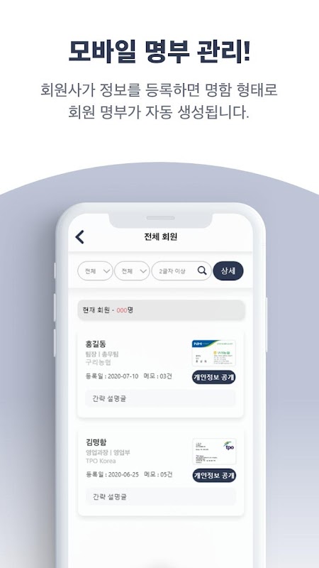 เป็นแพลตฟอร์มแลกเปลี่ยนธุรกิจที่ใช้นามบัตรที่ใหญ่ที่สุดในเกาหลีที่สร้างขึ้นสำหรับซีอีโอและพนักงานขาย เข้าร่วมชุมชนที่หลากหลายตามอุตสาหกรรม อาชีพ และสหกรณ์/องค์กร และพยายามขยายความร่วมมือทางธุรกิจ ความสัมพันธ์ส่วนตัว และการขาย!!!