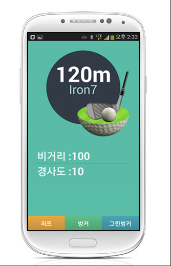 골프존 스크린 골프 게임에서 게임시 러프, 벙커, 그린벙커등에 공이 빠졌을때 남은 비거리 계산을 편하게 도와주는 스마트캐디 입니다.
