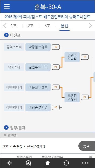 스포넷 배드민턴 - 대회일정, 대진표, 결과 1.5
