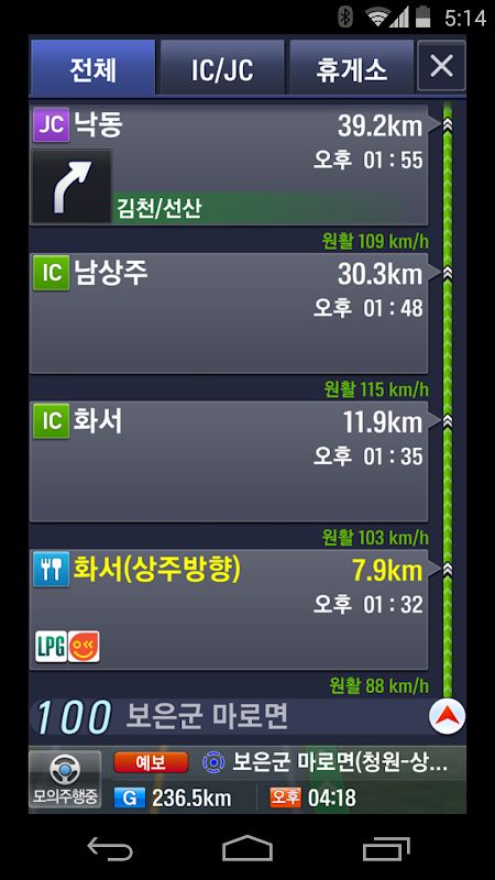 4. 고속도로 모드 : 고속도로 진출입로/휴게소 다양한 정보 제공