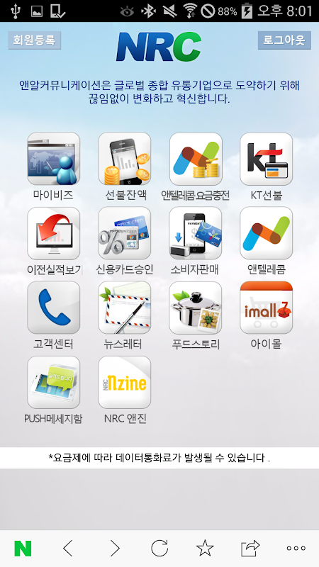 nrc 어플리케이션에서는 아래의 기능을 제공합니다.