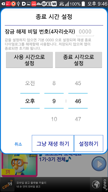 4. 재생시 자동으로 화면 잠금을 할 수 있습니다.