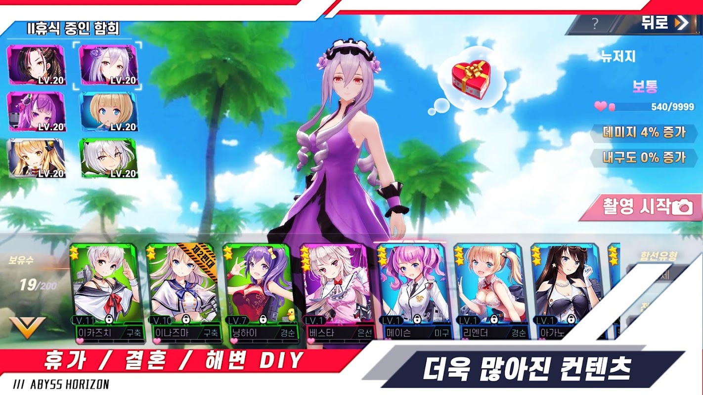 Abyss Horizon เป็นเกมกองทัพเรือ 3 มิติที่น่าตื่นเต้นที่สามารถเปลี่ยนกองทัพเรือของคุณให้กลายเป็นmoirésช่วยให้คุณรวบรวมและฝึกอบรมนักต่อสู้และแฟน 3D ผู้เล่นสามารถกลายเป็นผู้บัญชาการโดยตรงพาพวกเขาไปที่ทะเลและสนุกไปกับการต่อสู้นองเลือดกับสัตว์ประหลาดที่ไม่รู้จักจากเหว