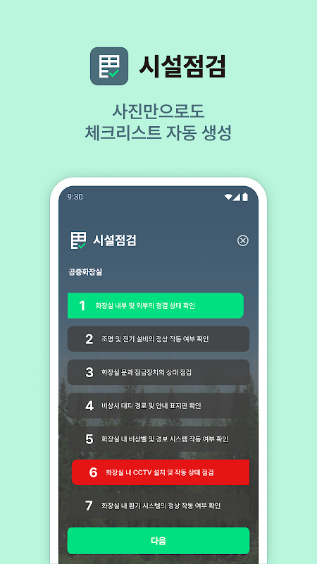 การตรวจสอบสิ่งอำนวยความสะดวก: แอประบบการจัดการความปลอดภัยและสุขภาพของสำนักงาน Yeongam-gun ยังรองรับเอกสารการตรวจสอบสิ่งอำนวยความสะดวกที่สามารถสร้างได้บนอุปกรณ์มือถือ คุณสามารถเลือกรายการการตรวจสอบสำหรับสิ่งอำนวยความสะดวกต่างๆ ในภาคสนาม และบันทึกผลการตรวจสอบแบบเรียลไทม์เพื่อจัดการได้อย่างมีประสิทธิภาพ