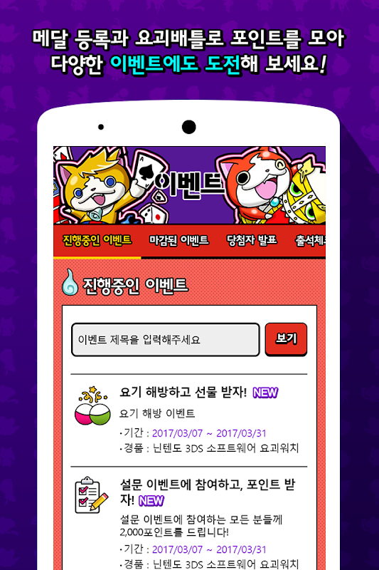 ● 내가 모은 요괴메달을 이용해서 요괴배틀도 즐기고, 획득한 메달 포인트로 이벤트에 참여하여 레어 아이템을 획득해 보자!