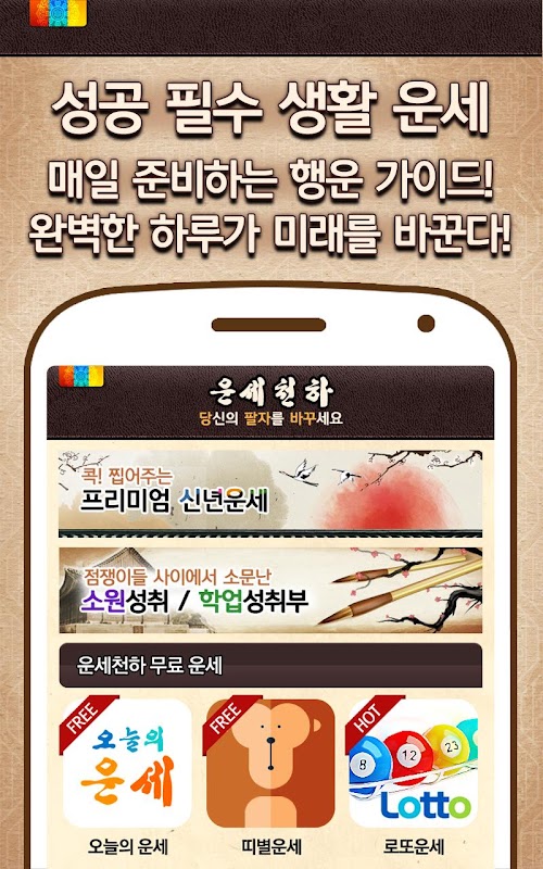 모바일에서 만날 수 있는 고퀄리티 종합 운세앱!