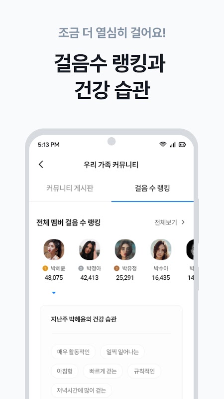 • บนหน้าจอชุมชน คุณสามารถดูจำนวนขั้นตอนที่เพื่อนของคุณใช้ WalkOn มีการแข่งขันนับก้าวกับเพื่อนของคุณ