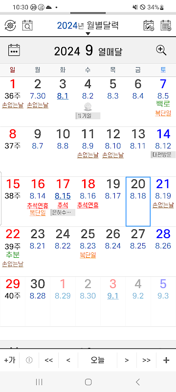 음력 달력 일정 1.9.0