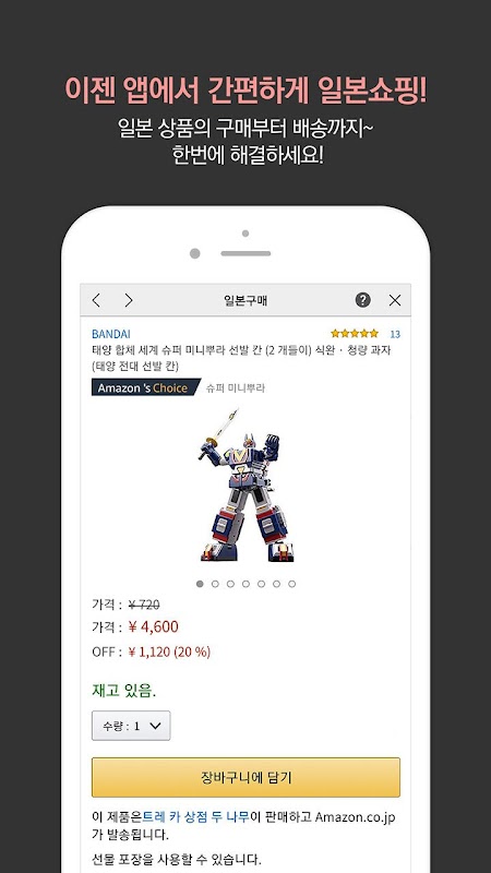 라쿠텐 구매대행, 메루카리 구매대행, 일본 아마존 구매대행의 쉽고 편한 쇼핑을 구현한 App입니다 .