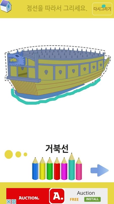 점선 따라 그리기 어플리케이션은 둥근선, 직선, 불규칙한 선을 그리고 학습하면서