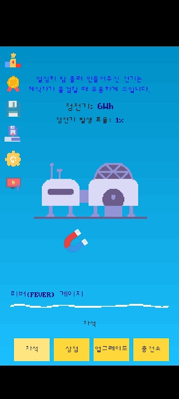 정전기 키우기는 휴대폰 기울기를 이용해 정전기를 모으고 업그레이드 하는 게임입니다!