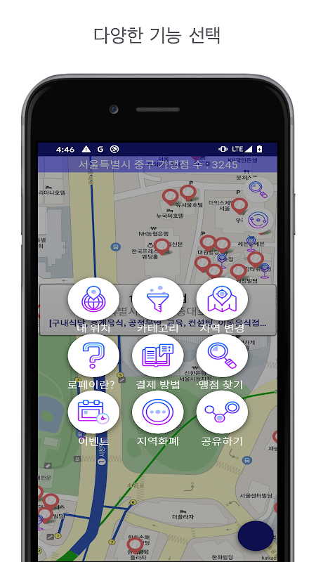 전국의 제로페이(지역화폐) 가맹점을 지도로 보여줍니다.