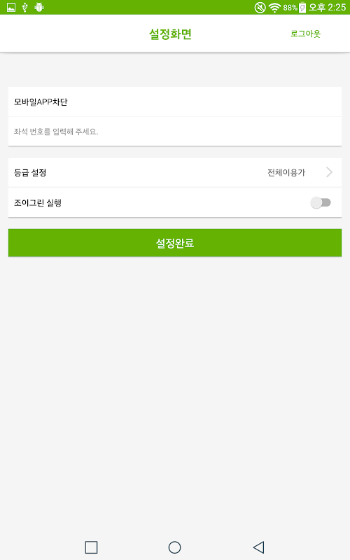 회원가입은 "조이그린 관리자용" 앱에서 해주셔야 하고 등급설정을 하고 실행하시면 설정된 등급에 맞게 유해,성인 사이트, 앱을 차단 해줍니다.